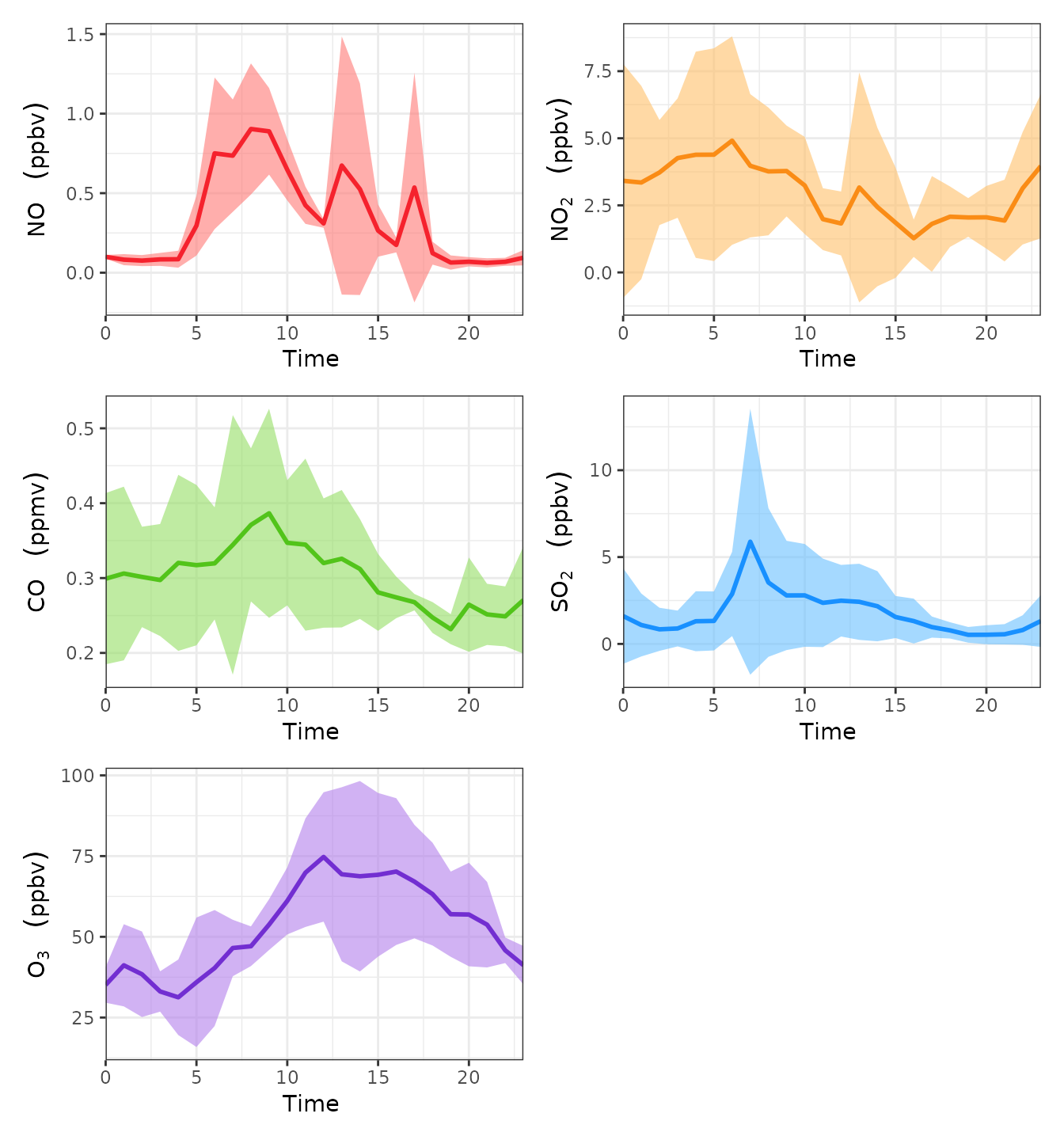 ylab1=list(bquote(NO~" "~(ppbv)), bquote(NO[2]~" "~(ppbv)), bquote(CO~" "~(ppmv)), bquote(SO[2]~" "~(ppbv)), bquote(O[3]~" "~(ppbv)))